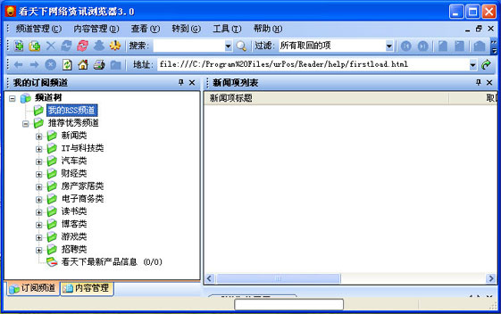 | 您一般需要下载和安装一个 RSS信息阅读器,然后从网站提供的聚合信息目录列表中订阅您感兴趣的信息栏目的内容。订阅后,您将会及时获得所订阅信息频道的最新内容。 |